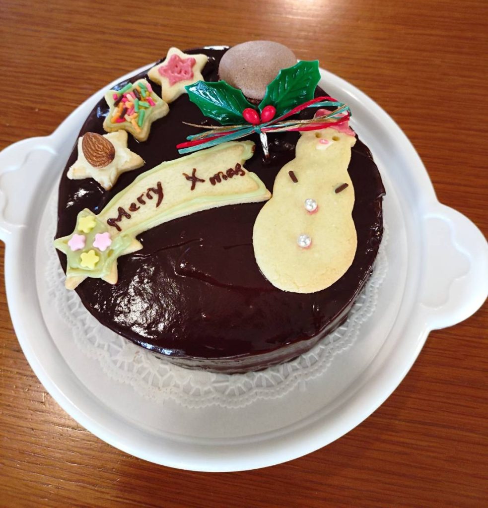 今日は、チョコのクリスマスケーキを作りました。綺麗にデコレーションできましたね。